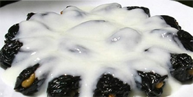 Берем чернослив, необходимо чтобы он был блестящим, и замачиваем его в холодной воде 20-30 минут. Если чернослив с косточками, осторожно вынимаем их, так чтобы не повредить целостность плода. Грецкие орехи немного подсушить в духовке или на сковороде и осторожно поместить каждую половинку ореха внутрь каждого чернослива. Красиво уложить в прозрачную пиалу и полить сверху взбитыми сливками. Сливки можно взять уже готовые в специальных баллончиках, а можно приобрести 35% сливки в магазине и самостоятельно взбить их миксером. Главное не перестараться и не сделать из сливок масло.